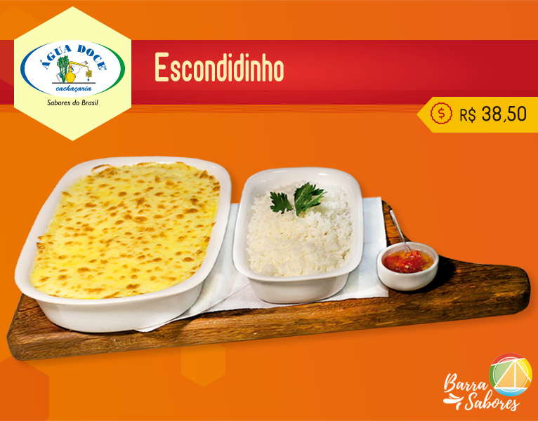 Escondidinho preparado com purê de mandioca, requeijão e um recheio de carne seca que dá aquele sabor especial. Acompanha arroz e