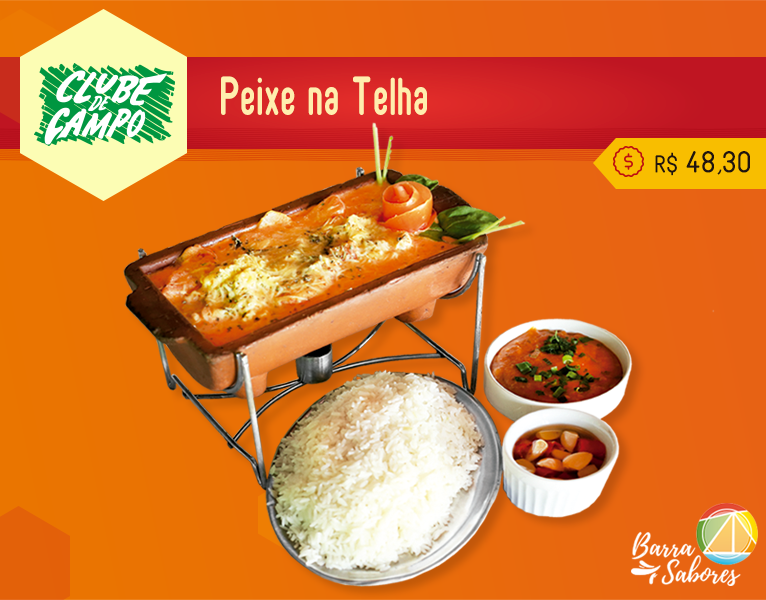 Peixe cozido ao molho com tomate, cebola e champignons. Acompanha pães, patês, salada, pirão e arroz branco.